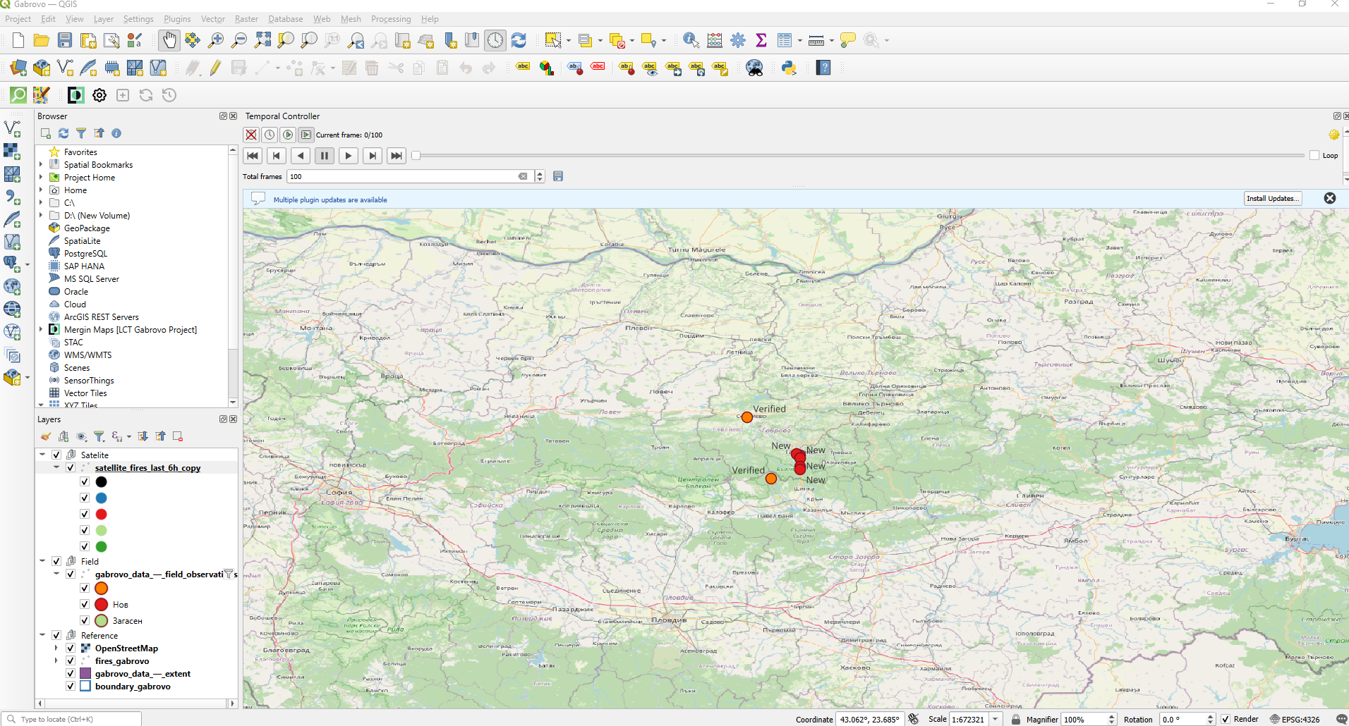 In recent years, wildfires have become an increasingly serious issue across Bulgaria, particularly during the summer months when high temperatures, dry conditions, and difficult terrain can accelerate both detection and response challenges. In that context, a local municipality needed a more reliable way to detect, track, and coordinate wildfire incidents. We designed and implemented an integrated map-based solution combining QGIS, Mergin, Make.com, PythonAnywhere, and NASA FIRMS (MODIS) to support both field teams and central administration. The final system brings together manual incident reporting, field updates, satellite-based detections, offline map access, and structured operational workflows into one environment.